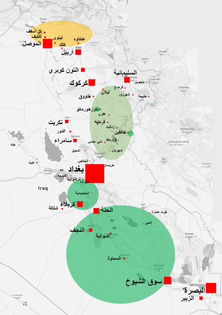 تمتد مناطق التركمان بشكل خط من قزلرباط جنوباً وحتى أربيل شمالاً ولم يذكر الكاتب تركمان تلعفر أو خانقين. يذكر وجودهم في قزلرباط، قره تبه، كفري، طوزخورماتو، ليلان، كركوك، اربل. والغريب أن المنشي البغدادي يعرف بعض التركمان بأنهم “يتكلمون التركية” فيقول مثلاً أهلها أكراد ويتكلمون الكردية والتركية، ويميز بين هؤلاء وبين تركمان كركوك الذين يقول عنهم أنهم ينكجرية (انكشارية) مرجعاً اصولهم الى التواجد العسكري التركي في المدينة.